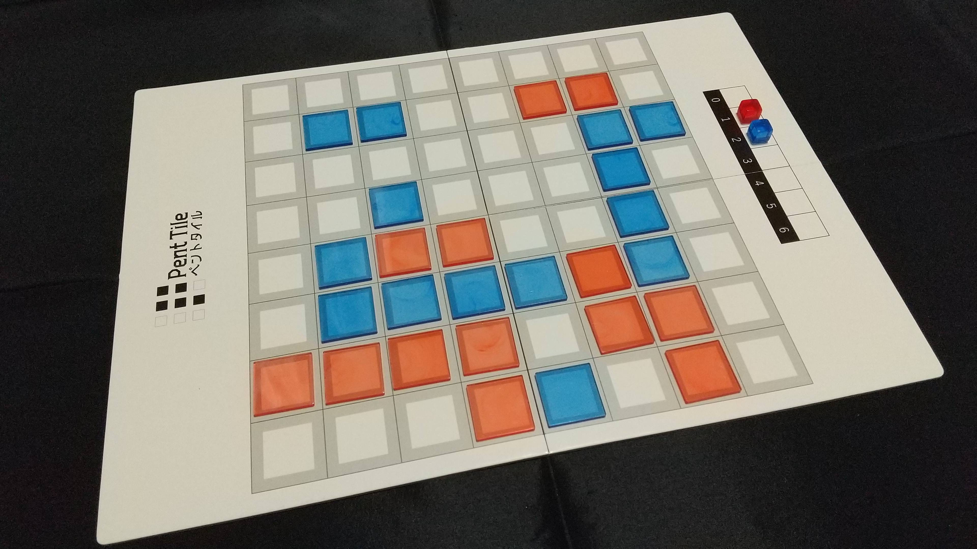 Pent Tile はプレイヤー 2 人が交互に自分のタイルを配置し、 5 枚のタイルからなるグループをより多く・より早く作成したプレイヤーが勝ちとなるアブストラクトゲームです。