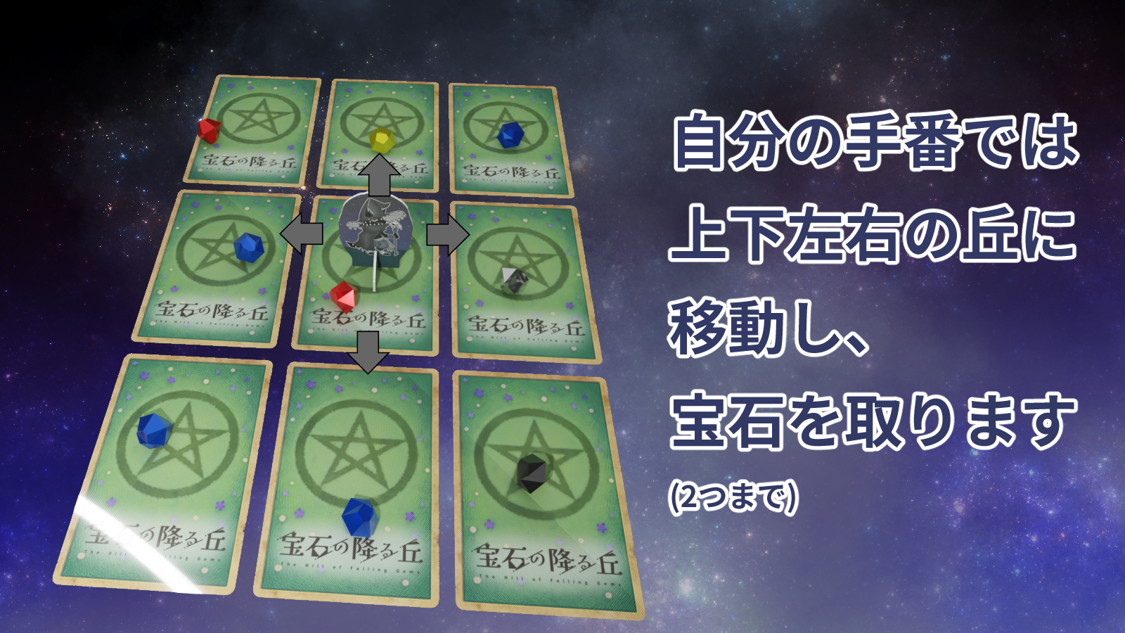 『宝石の降る丘』では、プレイヤーは丘を上下左右に移動し、移動先にある宝石を取ることができます💎