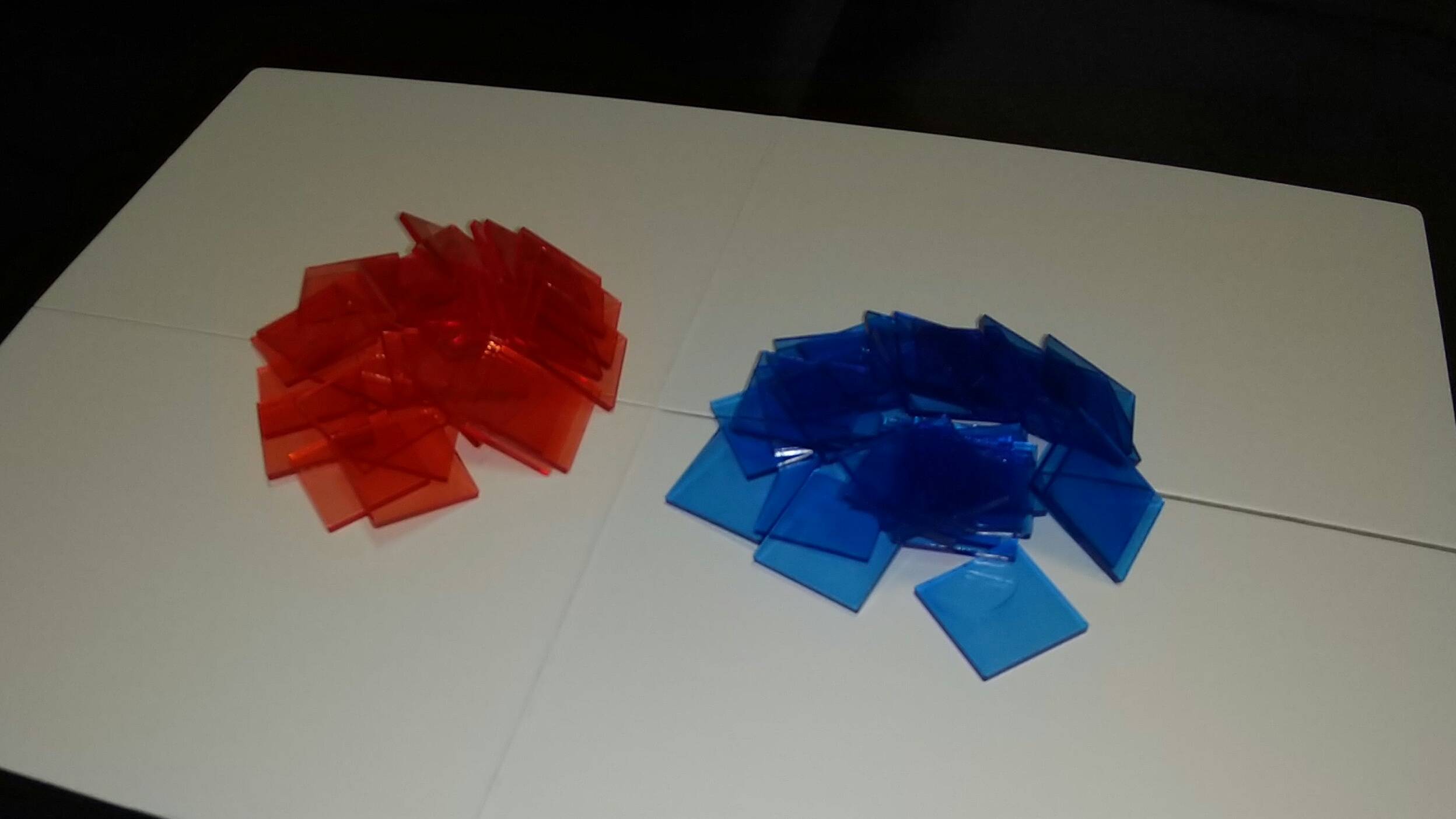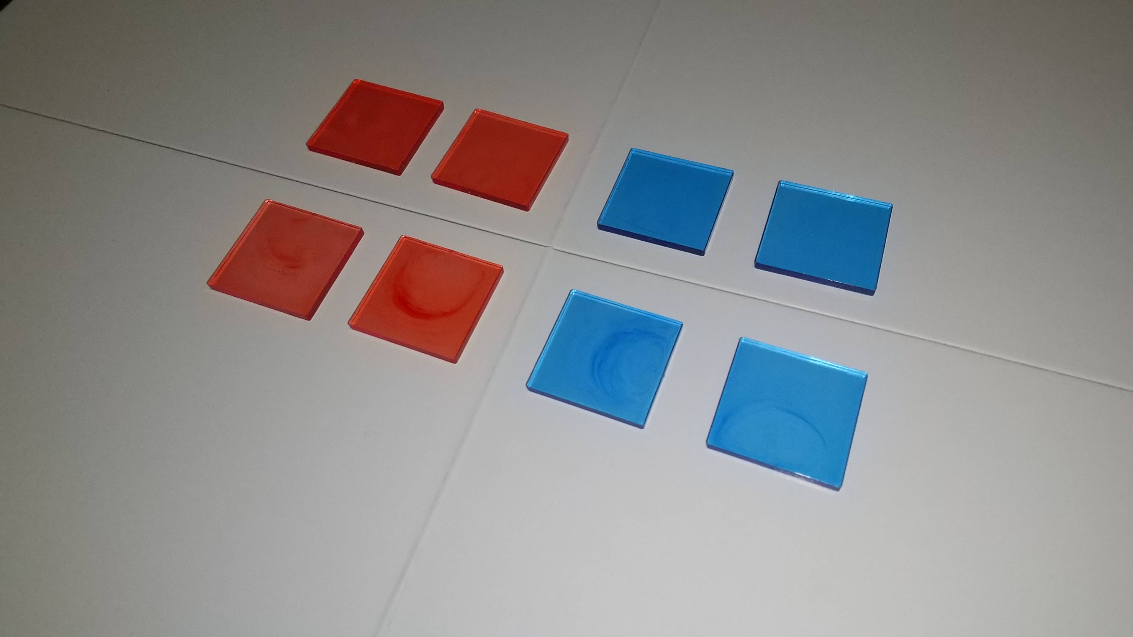 タイルは赤・青または緑・黄各 32 枚です。