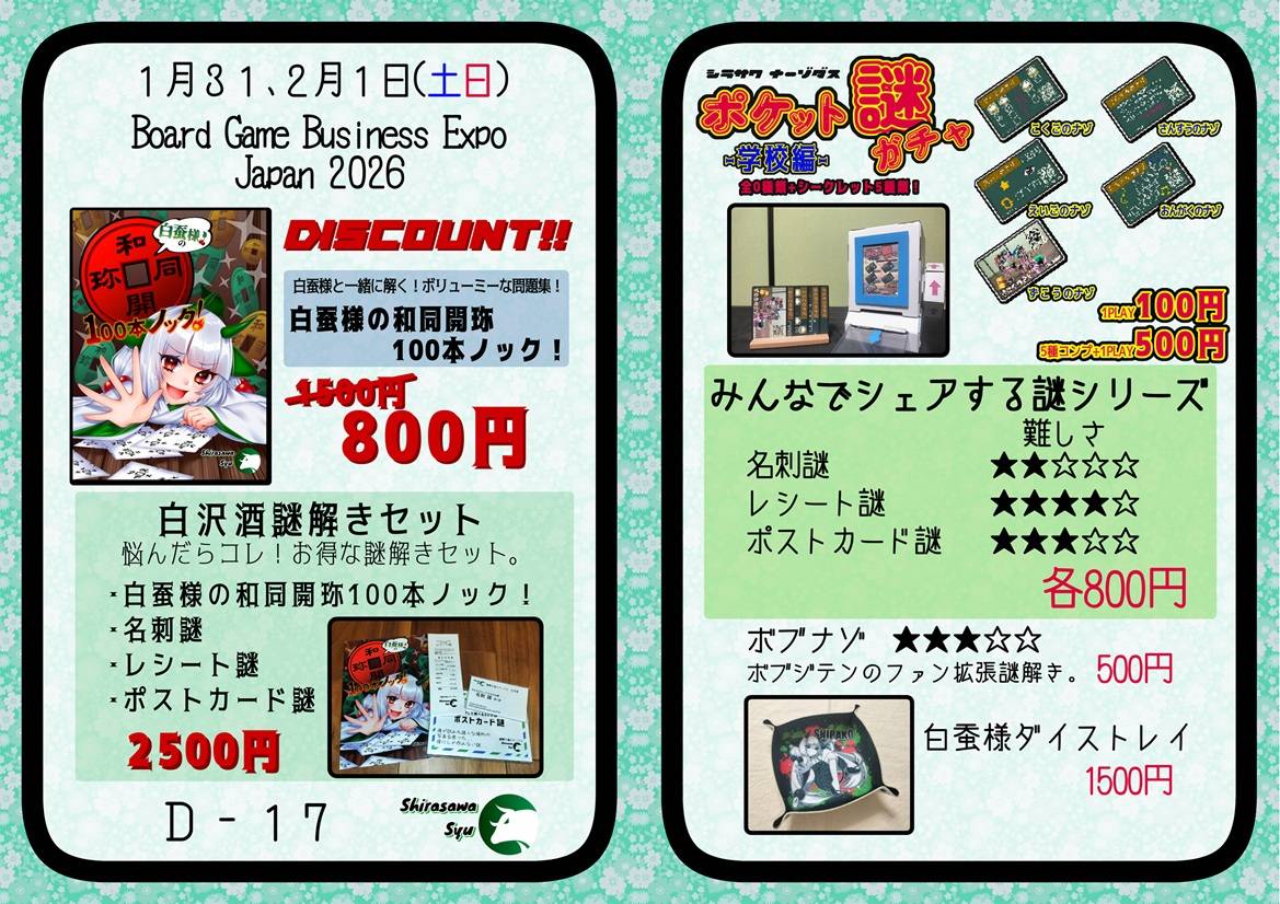 - Board Game Business Expo Japan 2026 白沢酒のお品書き。