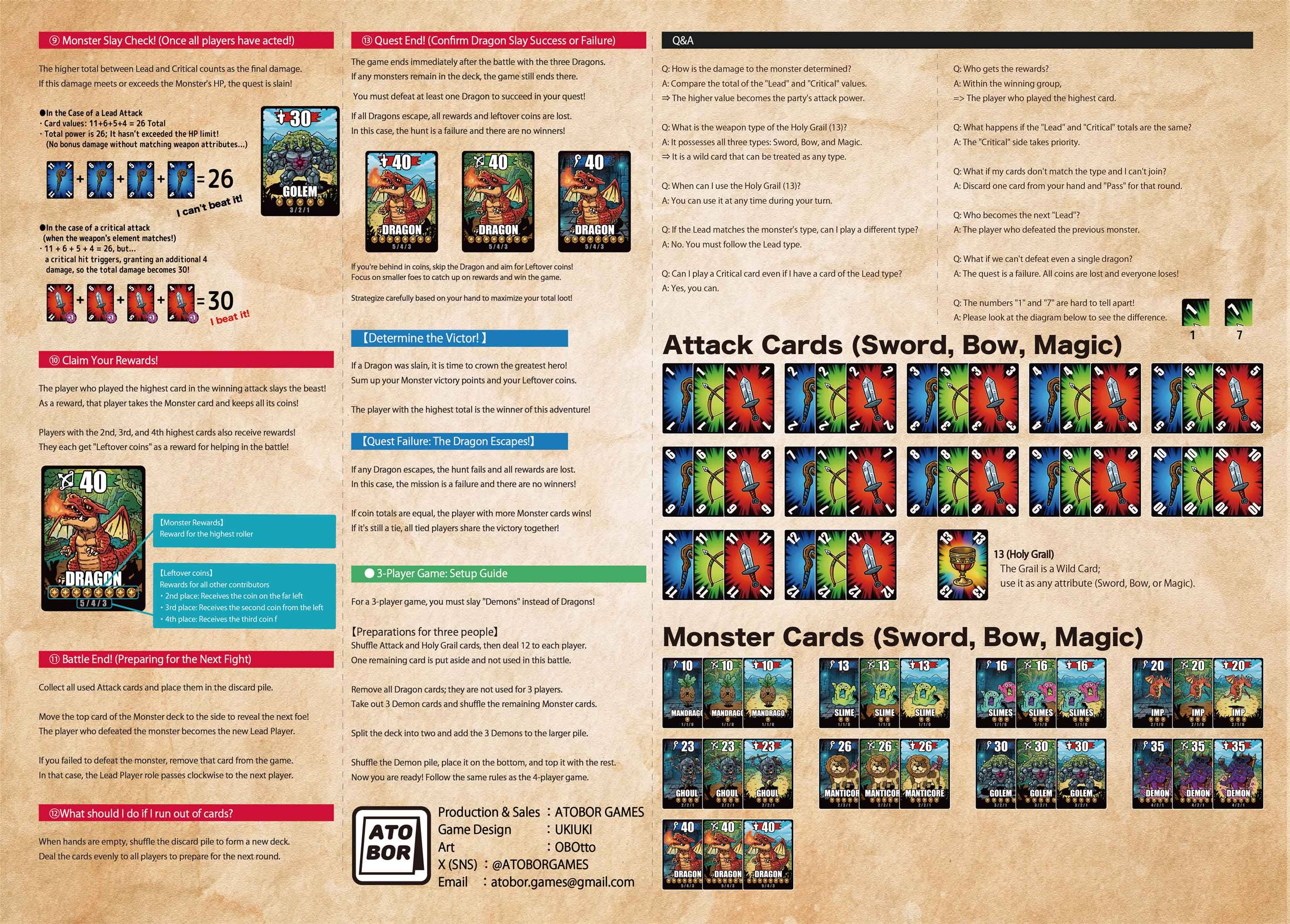 We’ve just released the rulebook for “Trickslayers”, coming to Game Market 2026 Spring! If you want to jump right in on the day, or check out the rules in advance, be sure to take a look! **Trickslayers** is a unique card game that blends *trick-taking* with *cooperative monster battles*. Play cards together, match suits, and combine your numbers to attack monsters! If your total exceeds the monster’s HP — victory is yours! Simple to learn, but packed with tension— the “join in or back out” decision-making will keep you hooked. ▼ Check out the rulebook here Trickslayers: Rules (Front) Trickslayers: Rules (Back)協力してモンスターを倒す