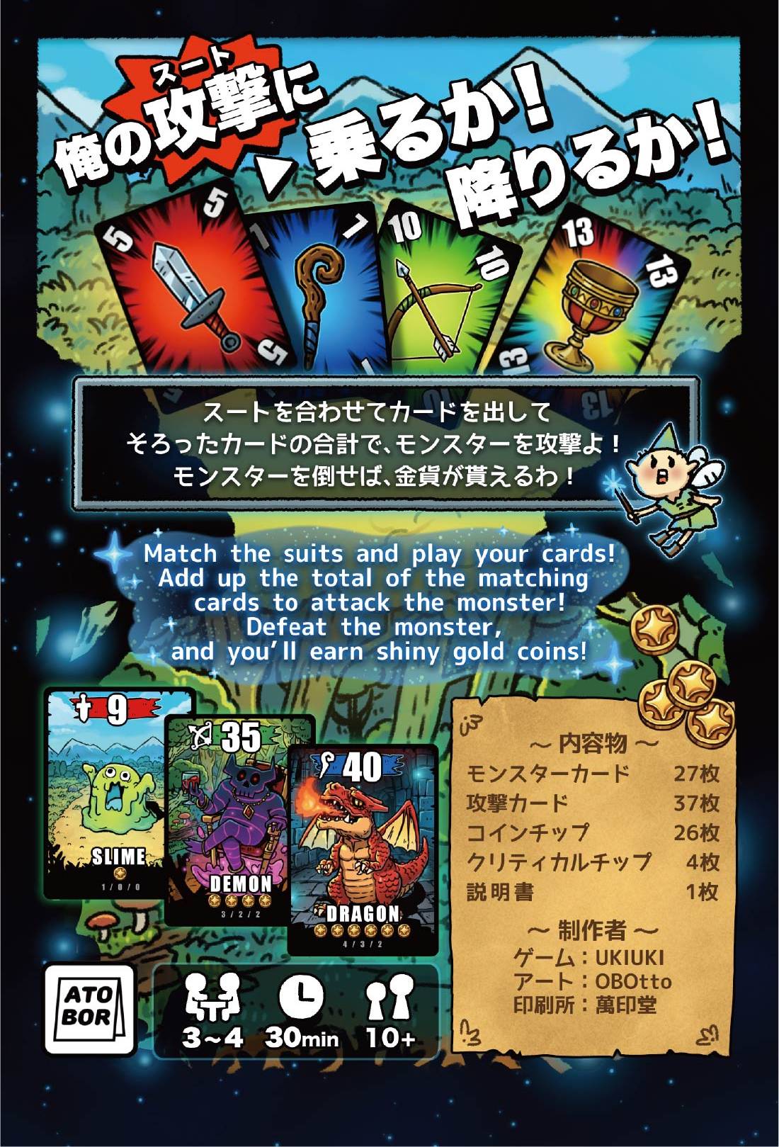 It features a system that masterfully blends cooperation and competition: while players compete for attack power based on the total value of their cards, the player who lands the strongest blow reaps the greatest rewards.