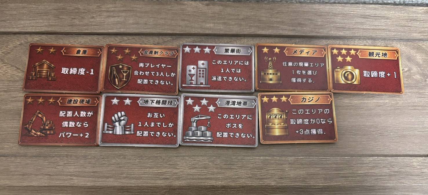 エリアには配置するルールなどがあり、表裏で全て能力が違います!