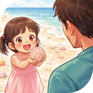 一生懸命ひろった貝殻を「パパこれあげる!」とプレゼント