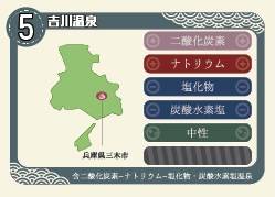 「♨️温泉これくたぁず!」のカードリストでは、兵庫県の吉川温泉などが該当します。