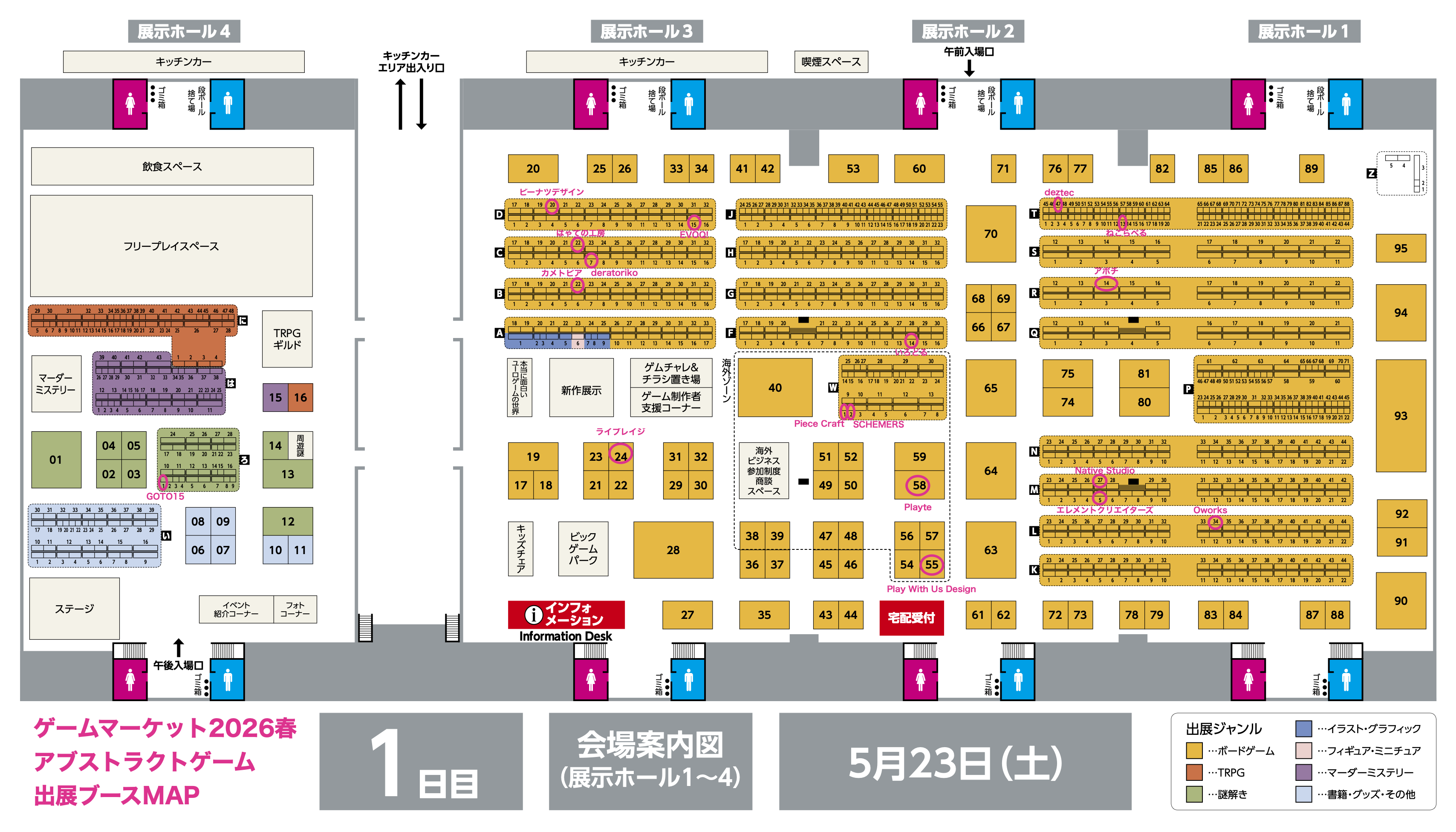 前回に引き続き、勝手にアブストラクトゲーム(運要素の無い、または少ないゲーム)のブースMAPを作りましたのでご活用ください。