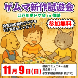 - 【参加無料】ゲームマーケット2025秋新作試遊会 in 篠崎【11/9(日)14時~】