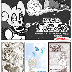 - ゲームマーケット2025秋土曜日Q63とらいあんぐる.sysのお品書きです。『はるかに灯る星の駅』¥3,000 (20個) 『呪いの森の仮面館』 ¥2,000 (4個) 『しろくツバサの舞う空に』 ¥1,500 (4個) 『ゆーけんクエスト』 ¥1,500 (4個)全品お家印刷の手作り仕様です。ですので、あまり数がご用意できません!自分で言っちゃいます! チープです!こんな奴でも、恥ずかしげもなくゲムマ参加してるぞーという目安になるのではないでしょうか?(笑)それでも!中身は、割とご好評いただけているんじゃないかと思っています。よろしくお願い致します。