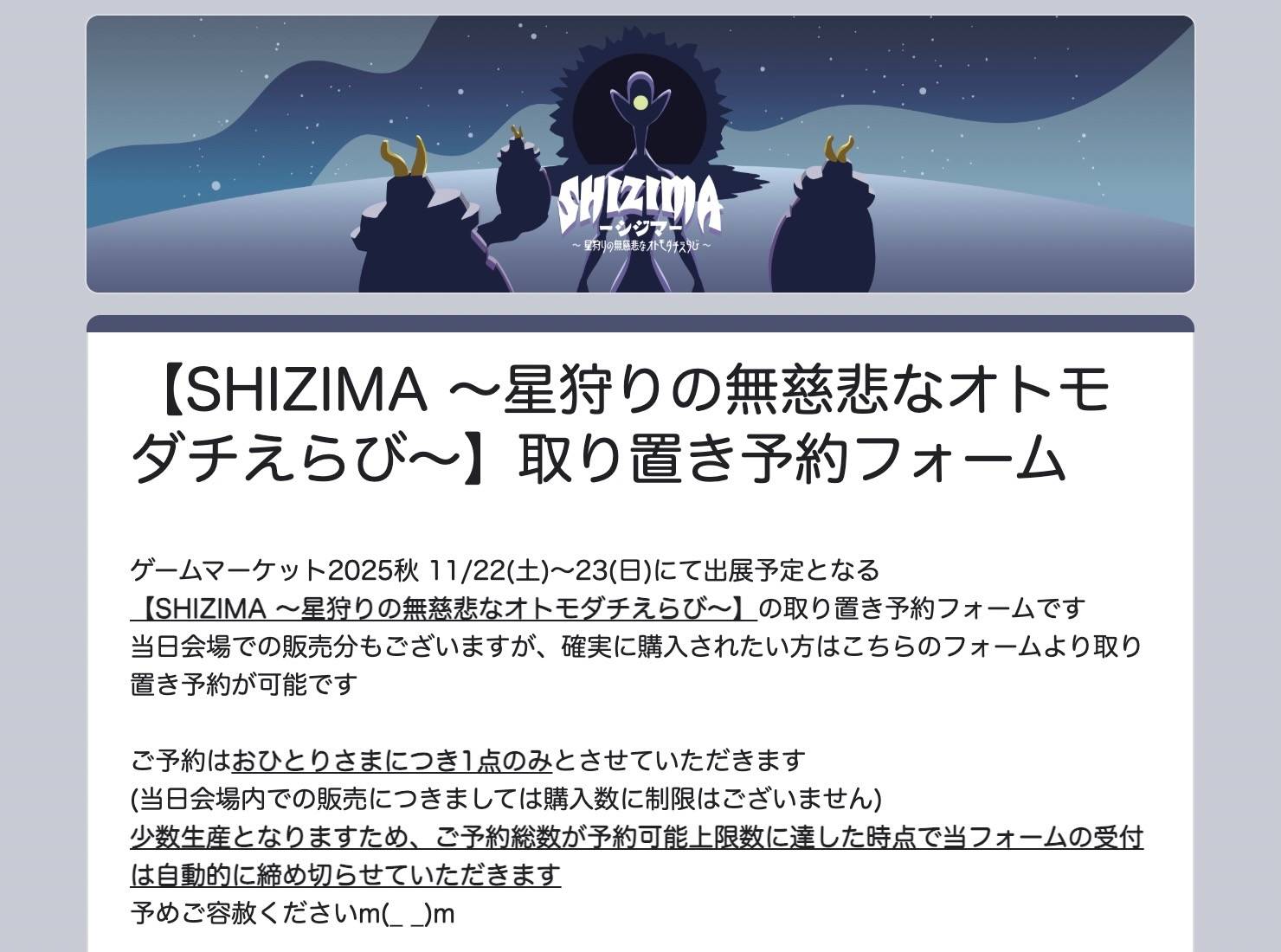 2025年秋新作<SHIZIMA>のゲーム詳細はコチラ