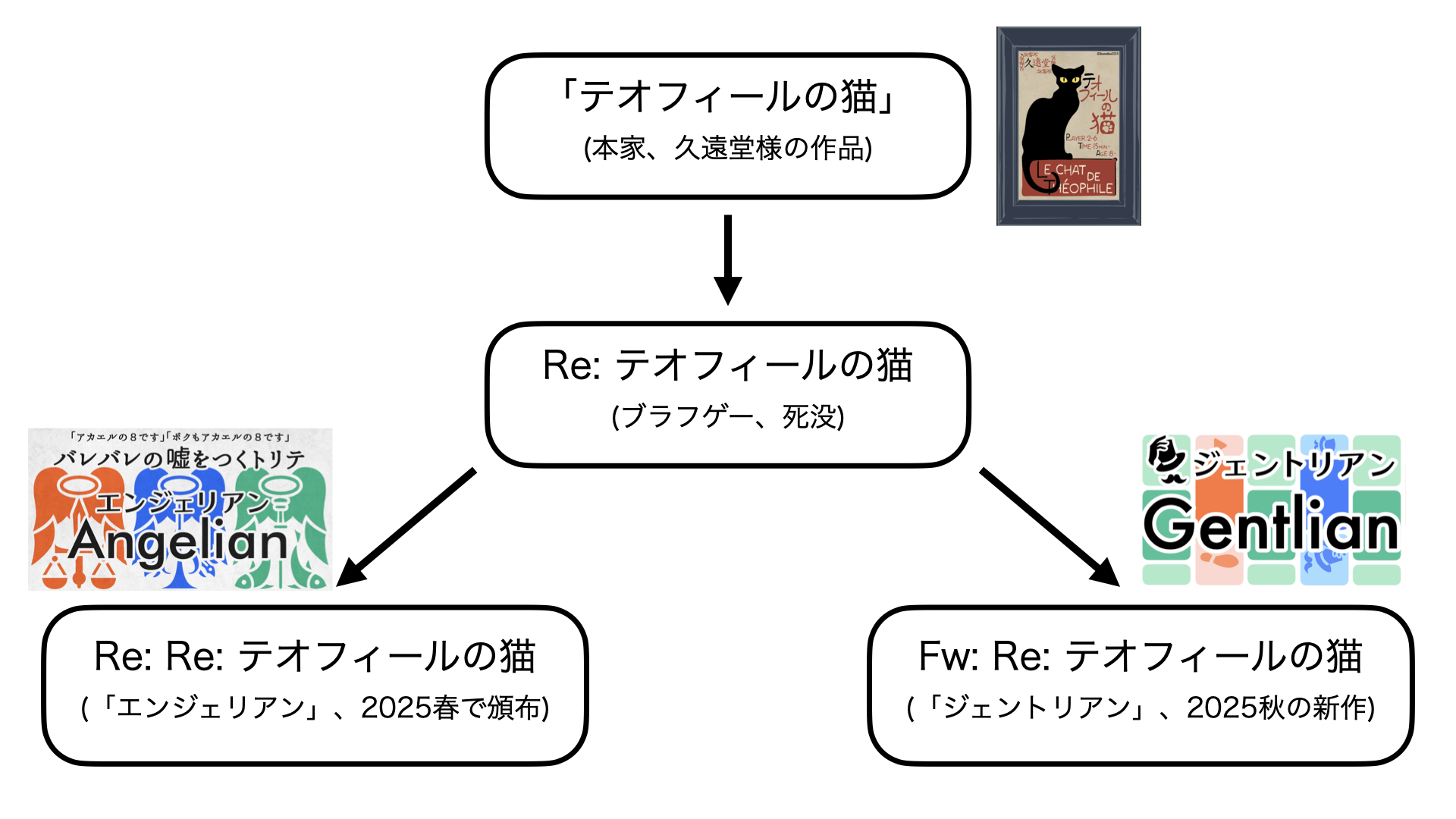 こうして、「テオフィールの猫」から生まれたブラフゲー (未完) のギミックを流用し、「ジェントリアン」の原型は生まれました。使い回しのことを「Fw (転送)」と表現するな。