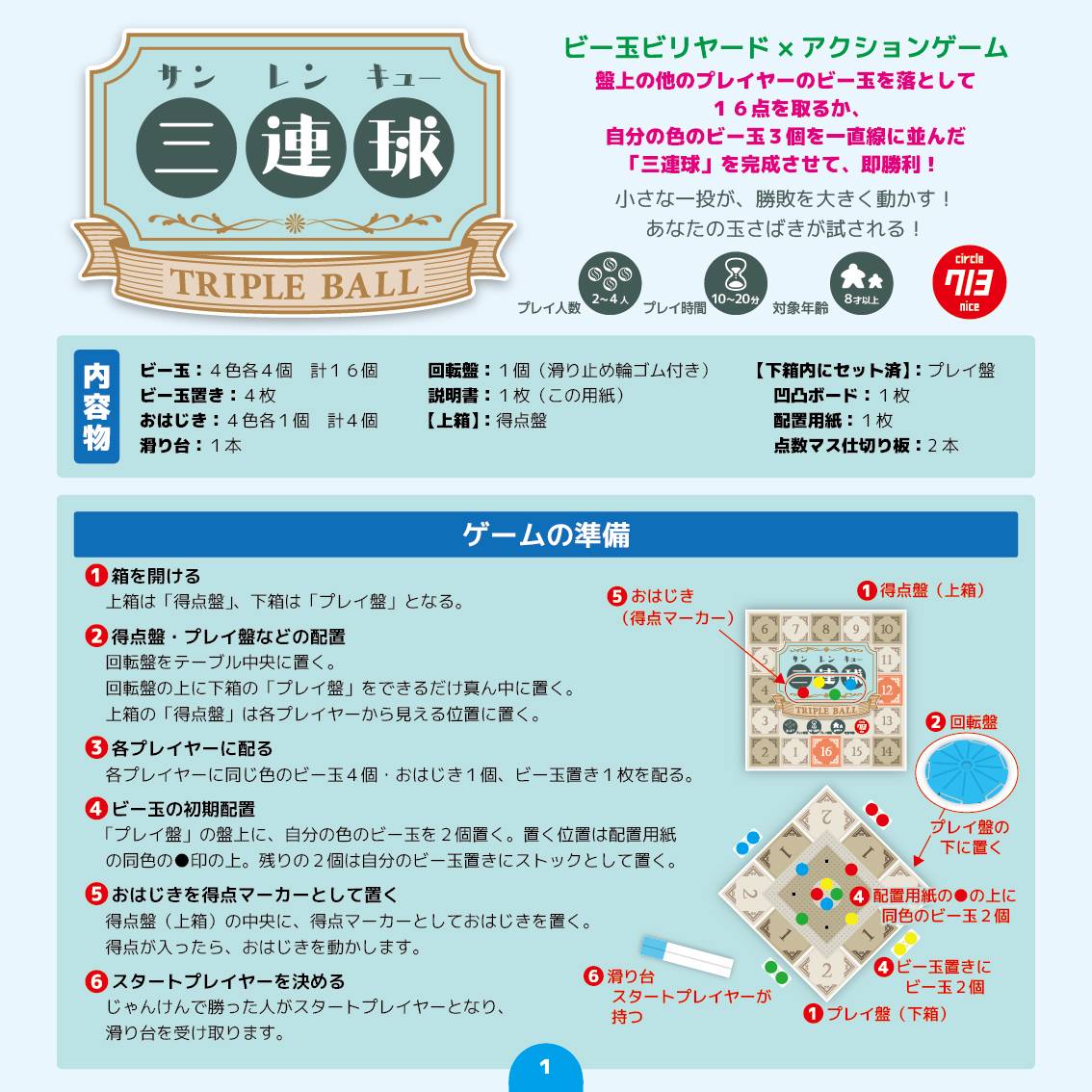 - ビー玉ビリヤード×アクションゲーム「三連球」説明書公開!