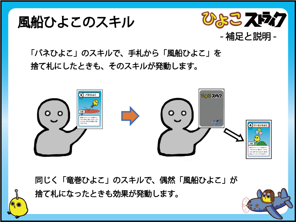 Q1:「バネひよこ」のスキルで「風船ひよこ」を捨て札にした場合、「風船ひよこ」のスキルは使えるの?