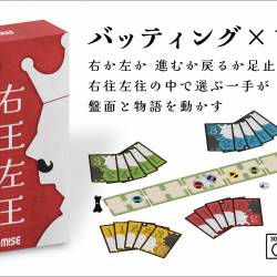 - 目次ゲームの概要ここがポイントゲームの流れポイント計算ゲームの概要プレイヤーは兵士となり、右王と左王の2人の王様がいる国で、どちらかの王様に忠誠を誓い、王に近づくことを目指します。手番では「王へ進む」か「道を作る」かのどちらかを選びます。ただし、他のプレイヤーと同じ「数字+方向」のカードを出してしまうとバッティングとなり無効になります。進めるのは、残った中で各方向の最大値だけ。どちらかの王に到達すると、その王から最も遠いプレイヤーとの距離が階級ptになります。罠を仕掛けたり、あえてバッティングを狙ったりしながら、最も高い階級を目指しましょう!プレイ人数:3〜5人 プレイ時間:30分 対象年齢:10歳〜ここがポイントバッティングすると進めないのに、相手が出した手を見てから自分の手を決められるあえてバッティングを狙う選択肢もある道を作って相手の進行を妨害できる進んだ距離がそのまま得点に関わる罠で相手を足止めできるゲームの流れ初期配置中央に街カードを置き、左右に共通道カードを2枚ずつ配置します。右端に右王カード、左端に左王カードを置き、各プレイヤーは自分の色の兵士コマを街に集めます。1. 1人ずつカードを出す移動したい方向と数値のカードを表にして出すか、道面(罠面)のカードを表にして出します。2. 道を挿入全員がカードを出し終わったら、道カードを出した人から順番に道カードを共通道に挿入します。王の手前にも挿入可能で、相手の到達を遅らせたり、罠を仕掛けたりできます。3. 移動する同じ数字+同じ方向で出した人がいる場合はバッティングとなり、その人たちは進めません。バッティングしなかった人の中で、右・左それぞれの最大値だけが進めます。 ポイント計算1シーズンは「誰かが王に到達する」か「5ラウンド経過」で終了します。到達した場合到達者の兵士から最も遠い兵士までの距離(カード枚数)が得点になります。到達しなかった場合街カードから自分の兵士までの距離(カード枚数)が得点になります。👉 くわしいルールPDFはこちら MiSEブースP46にて出展予定です。ぜひお気軽にお立ち寄りください!
