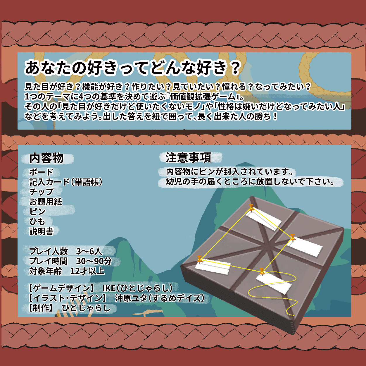 | プレイ人数 | 3〜6人 | プレイ時間 | 20〜90分 |
