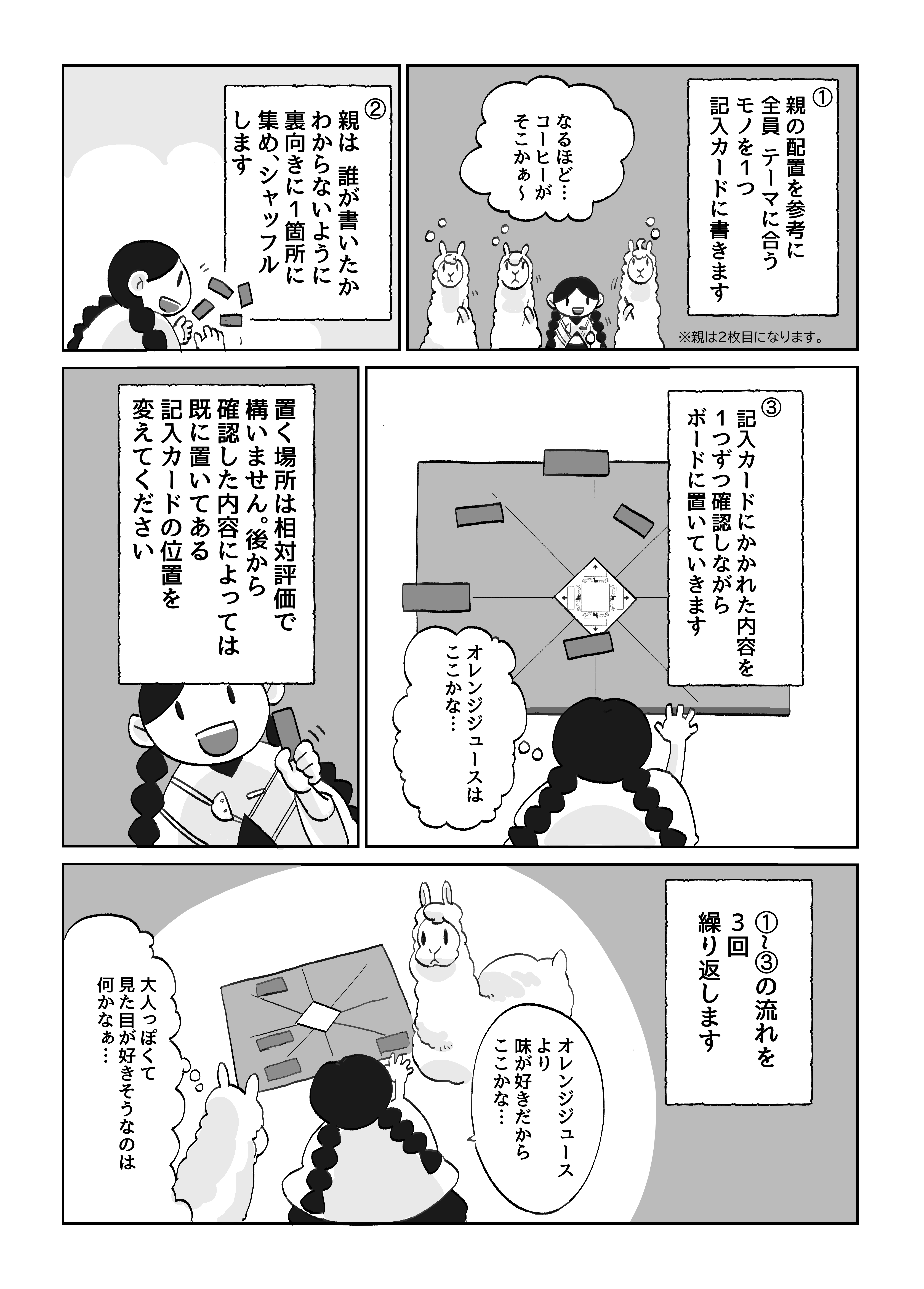 - 親のテーマと基準を元に、出した答えを囲って一番広くできた人の勝ち!
