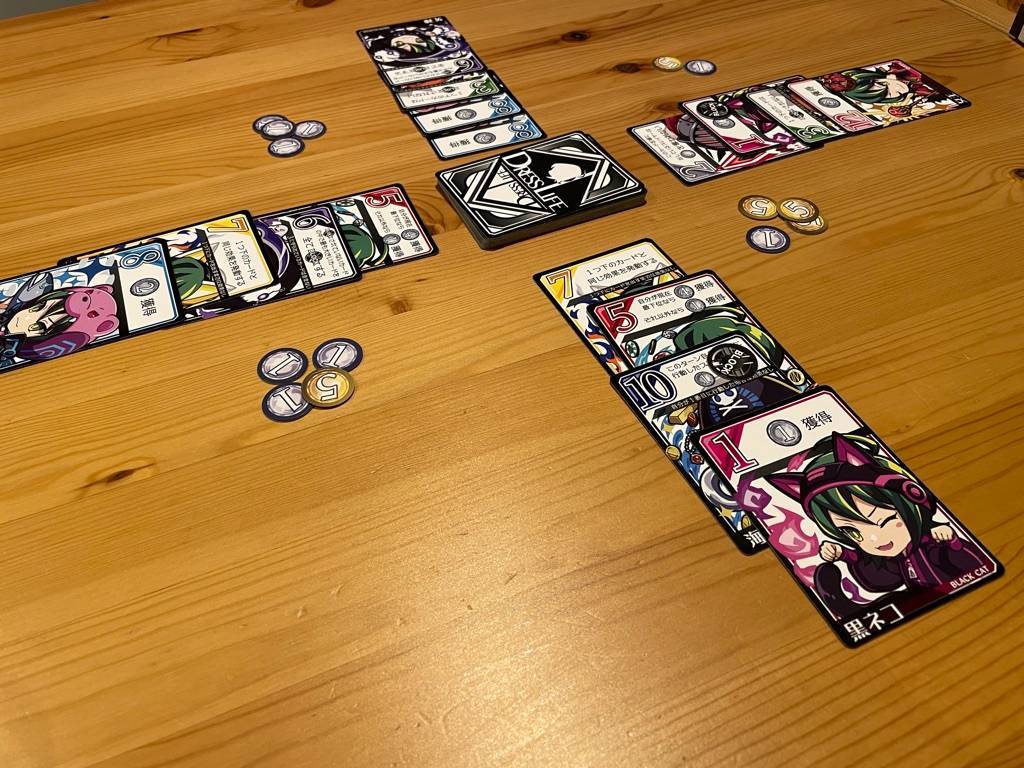 カードの効果は「得点の強奪」「防御」「他人のカードの無力化」「能力のコピー」といった個性的なものが多く、どのカードをどの順番に出すかによって引き起こされる効果が大きく変わります。