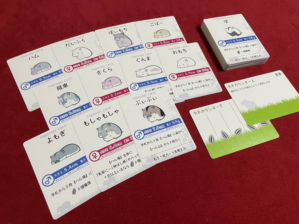 「タネの獲得」には「オスが何匹いるか?」「名前が5文字以上の子が何匹いるか?」といったハムスターのプロフィールが条件になっているカードがたくさんあるため、場のハムスターをよく観察することが重要です。