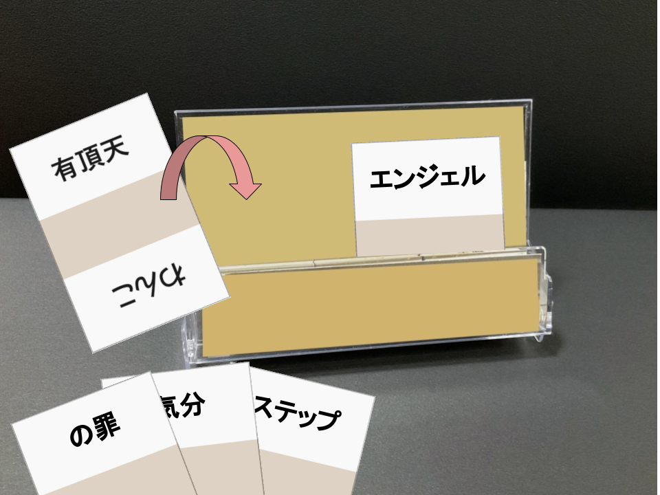 親は5枚のカード表裏上下を組み合わせてお題を決めよう!