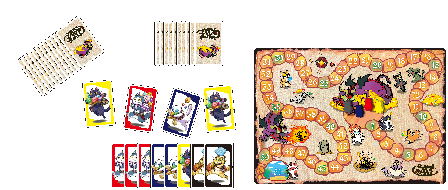 - 冒険猫たちを走らせて、自分の望む順位にしよう! 誰が勝つか、プレイしながら考えよう!