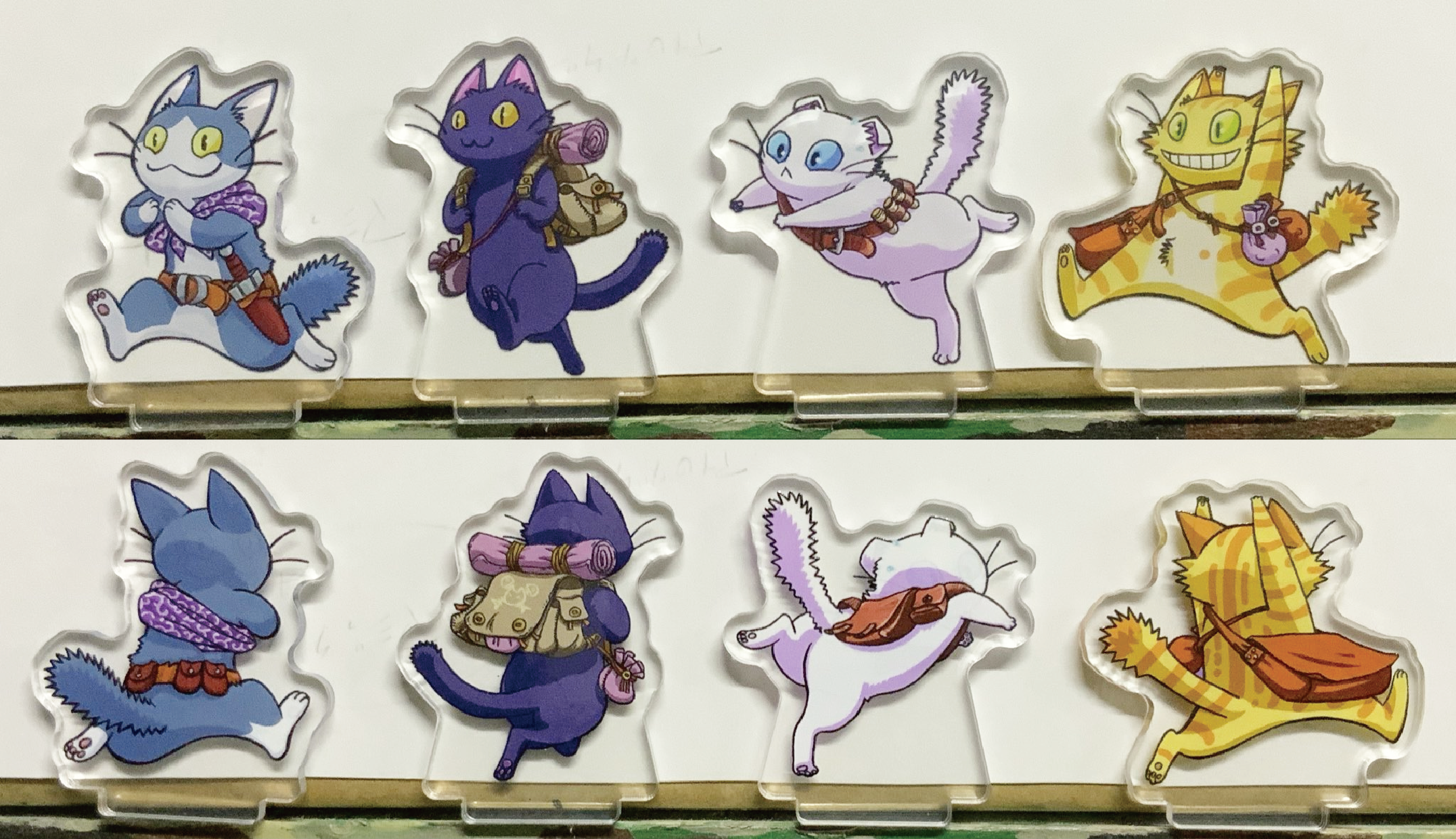 イラストを担当いただいた米良仁様より、4匹の新米冒険者のアクスタが予約限定で販売します。