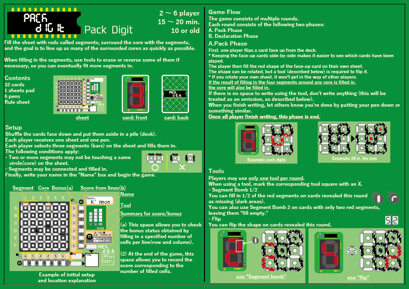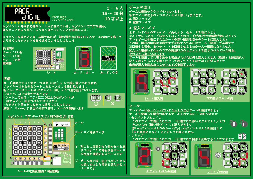 ![]() 日本語ルール(表面) | ![]() 日本語ルール(ウラ面) | ![]() English rule(top) | ![]() English rule (back) |