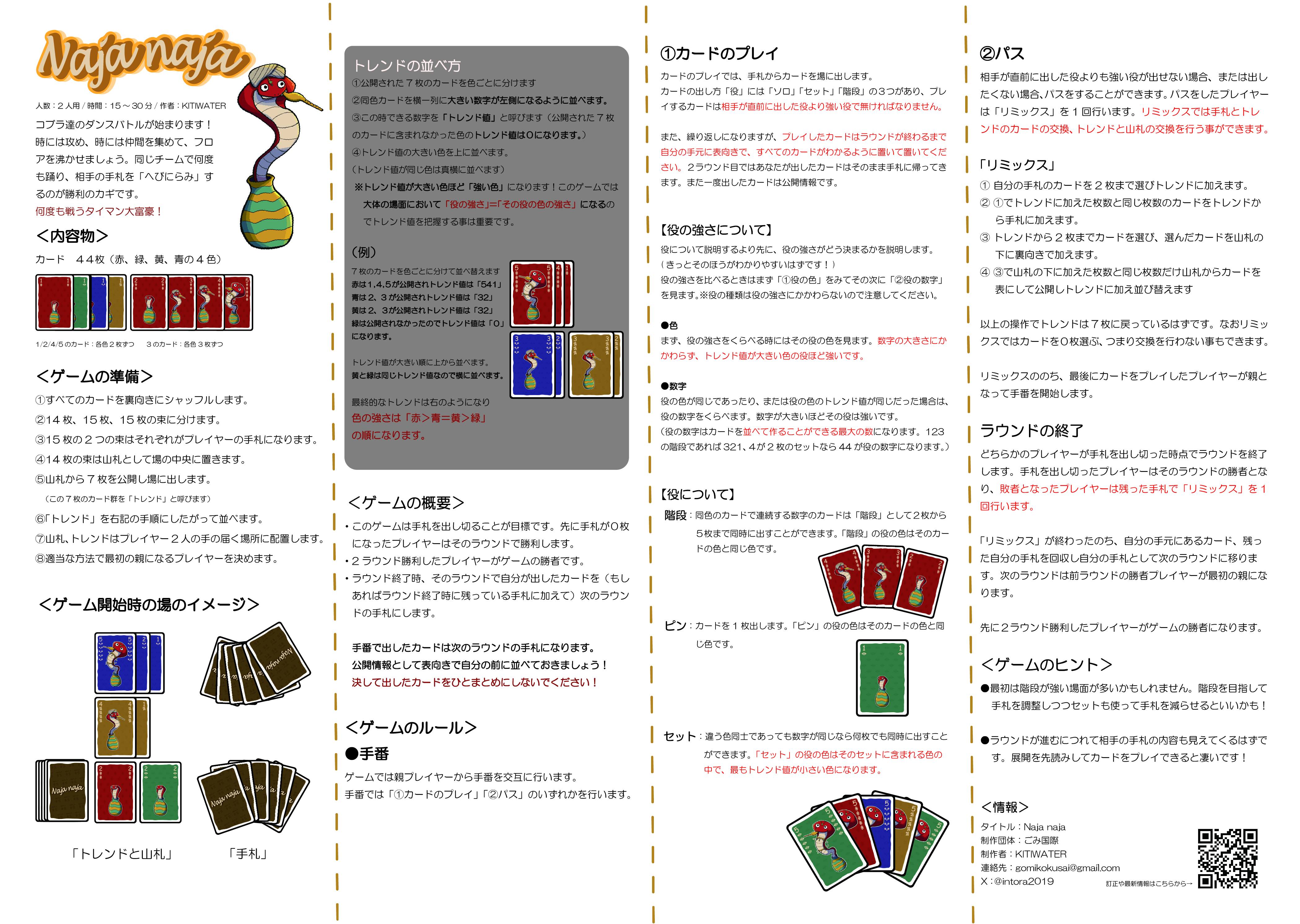 Naja najaは2人用大富豪!パスをすると場が流れ、非常に不利に思えますが、、、パスをしたほうは手札の強化&後述するトレンドの調整ができます!