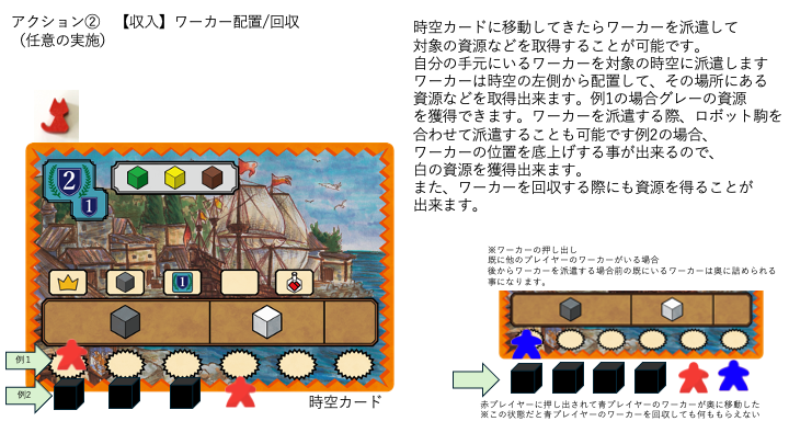 - 時空を巡りながら、ワーカーを派遣して資源を得ます。