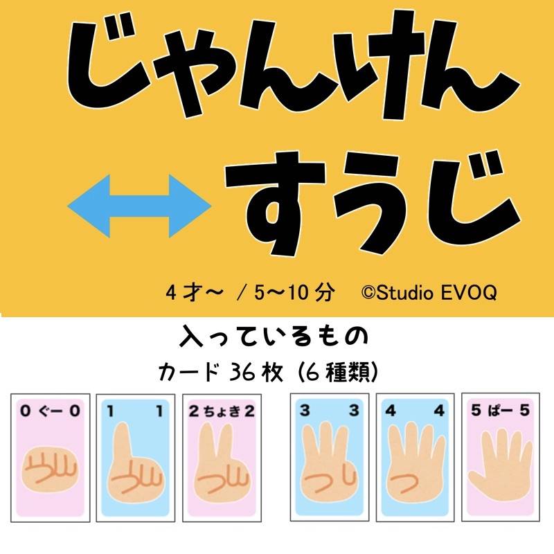 - 左隣の人のカードとじゃんけんしながら右隣の人と数字を繋げていくゴーアウト系のカードゲームです。