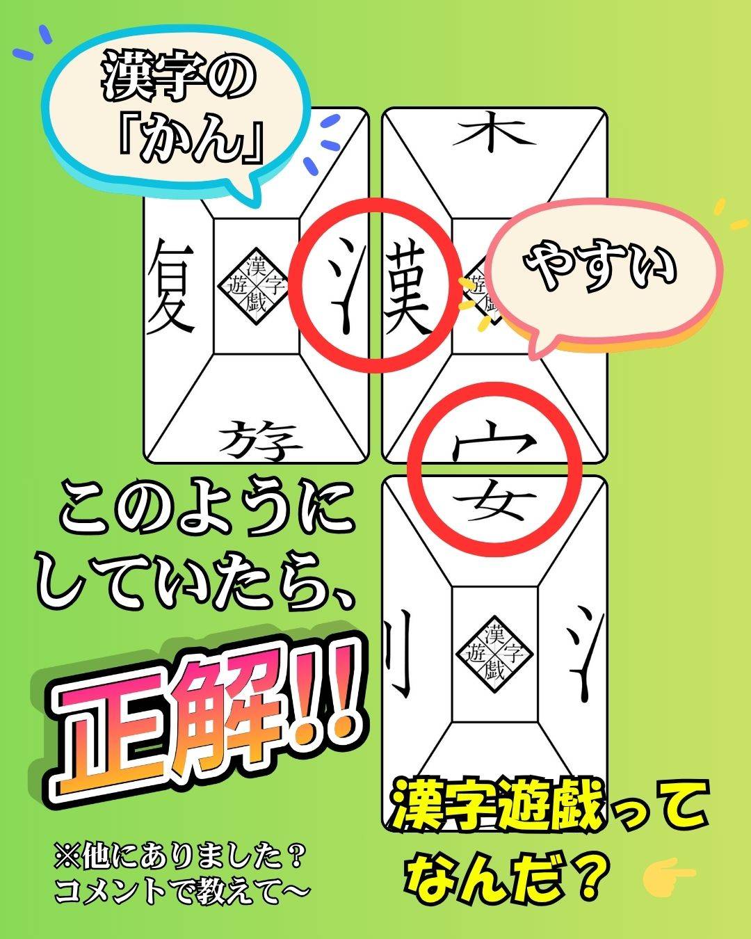 • ゲームに登場する漢字のパーツは、それぞれ最低二つ以上の漢字を作成可能。