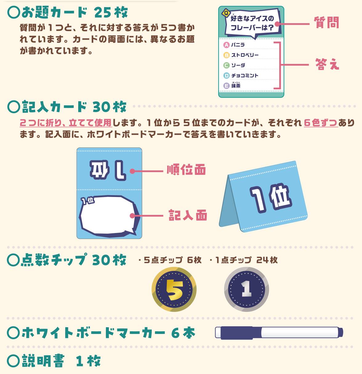 | プレイ人数 | 2〜6人 | プレイ時間 | 10〜30分 |