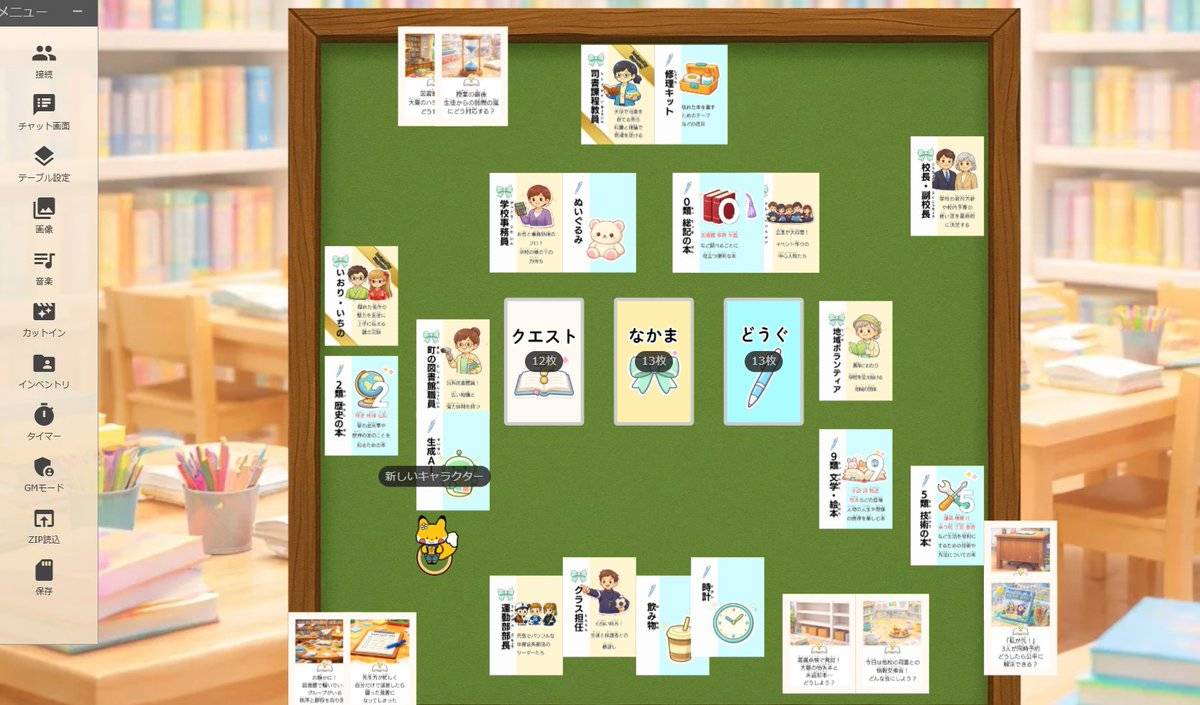 「なかまカード」と「どうぐカード」の多彩な組み合わせに加え、自分たちだけの「オリジナルカード」も作成可能です。「ヤンチャな常連」を味方にしたり、「推し活グッズ」でピンチを切り抜けたり、自校のリアルな「なかま」をカードに反映させることで、遊びの幅と笑いはさらに広がります。