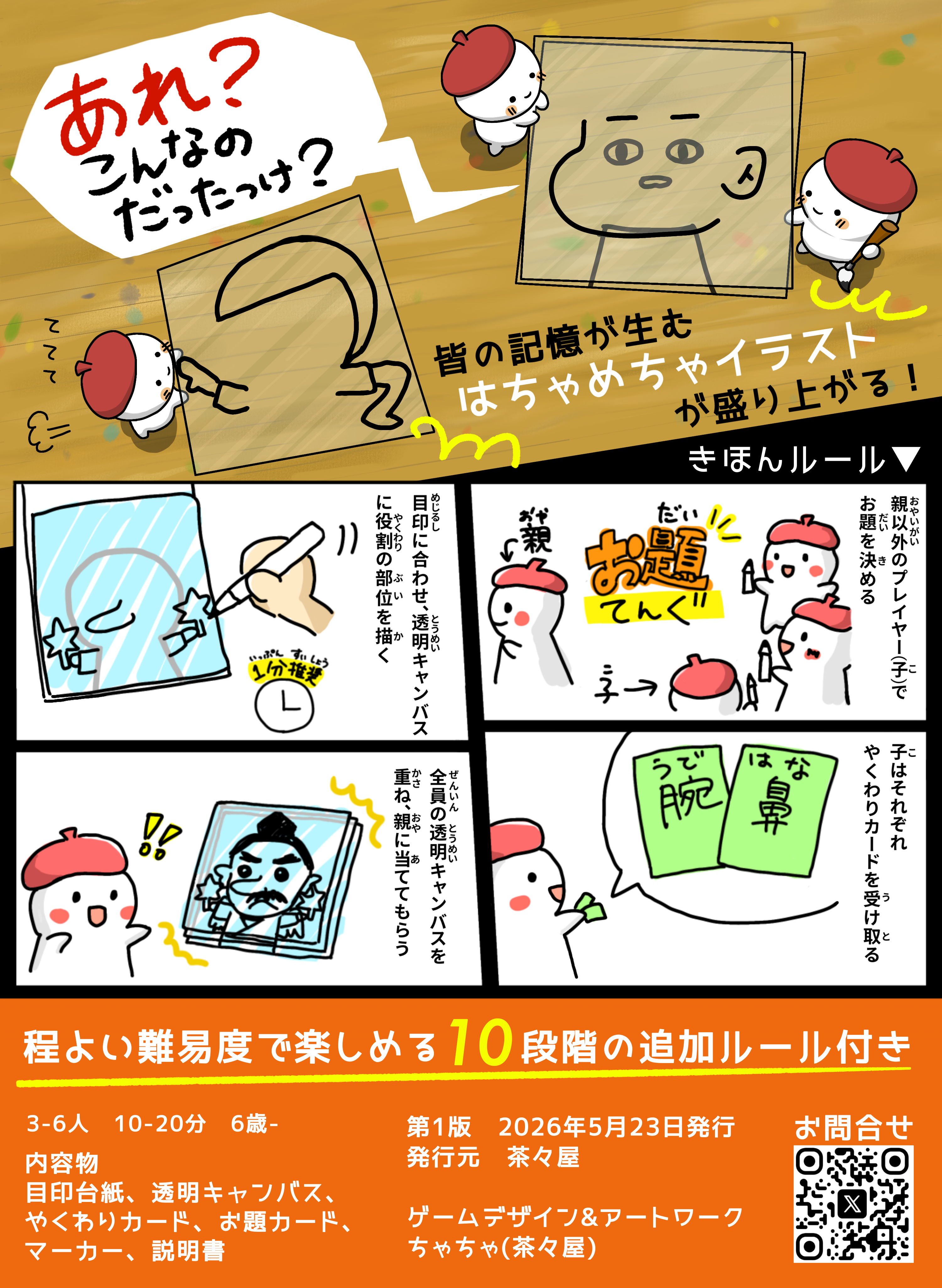 - イラストが得意な人から苦手な人まで楽しめる、10段階の追加ルール付きです🎨