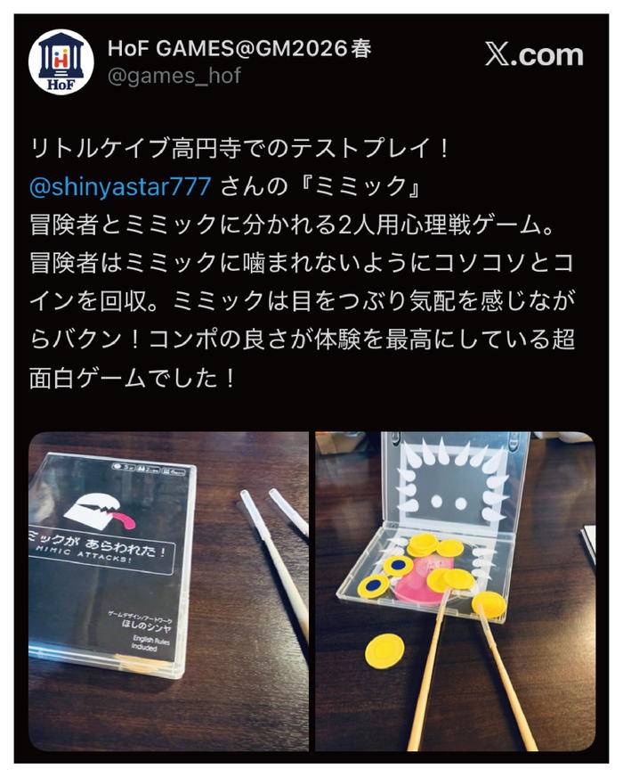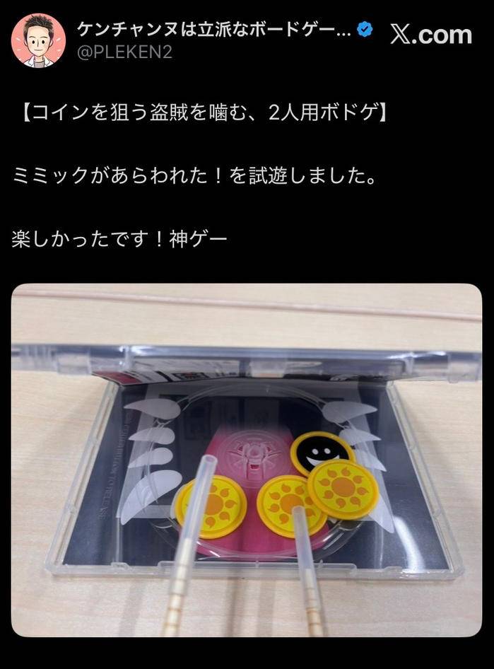 一方、盗賊は、スティックを器用に使ってメダルを取りますが、実は、取るふりをしてミミックに空振りさせても勝ちです。アクションとブラフが楽しいゲーム体験になっています。