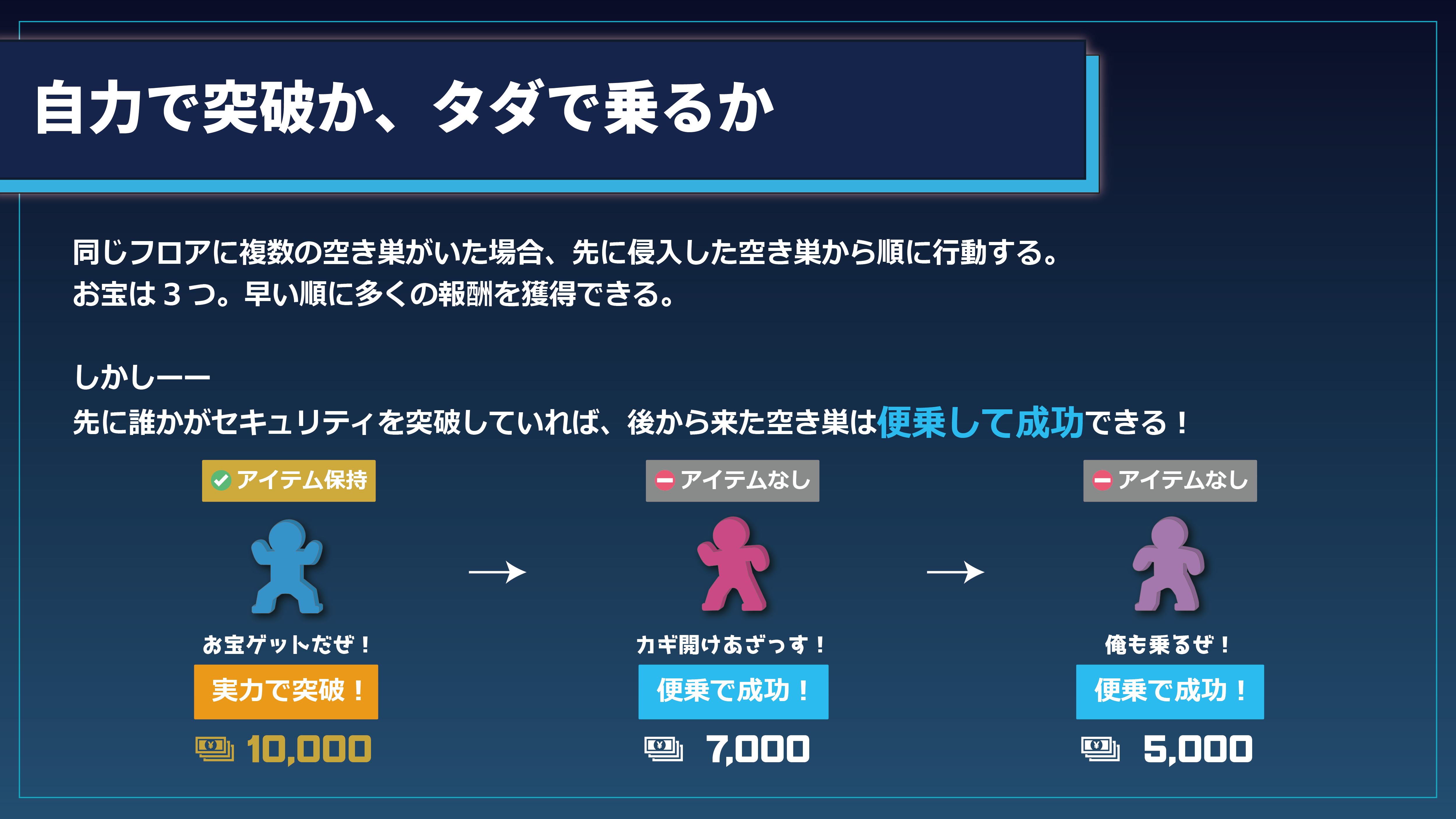 セキュリティを突破してお宝を狙うゲーム。