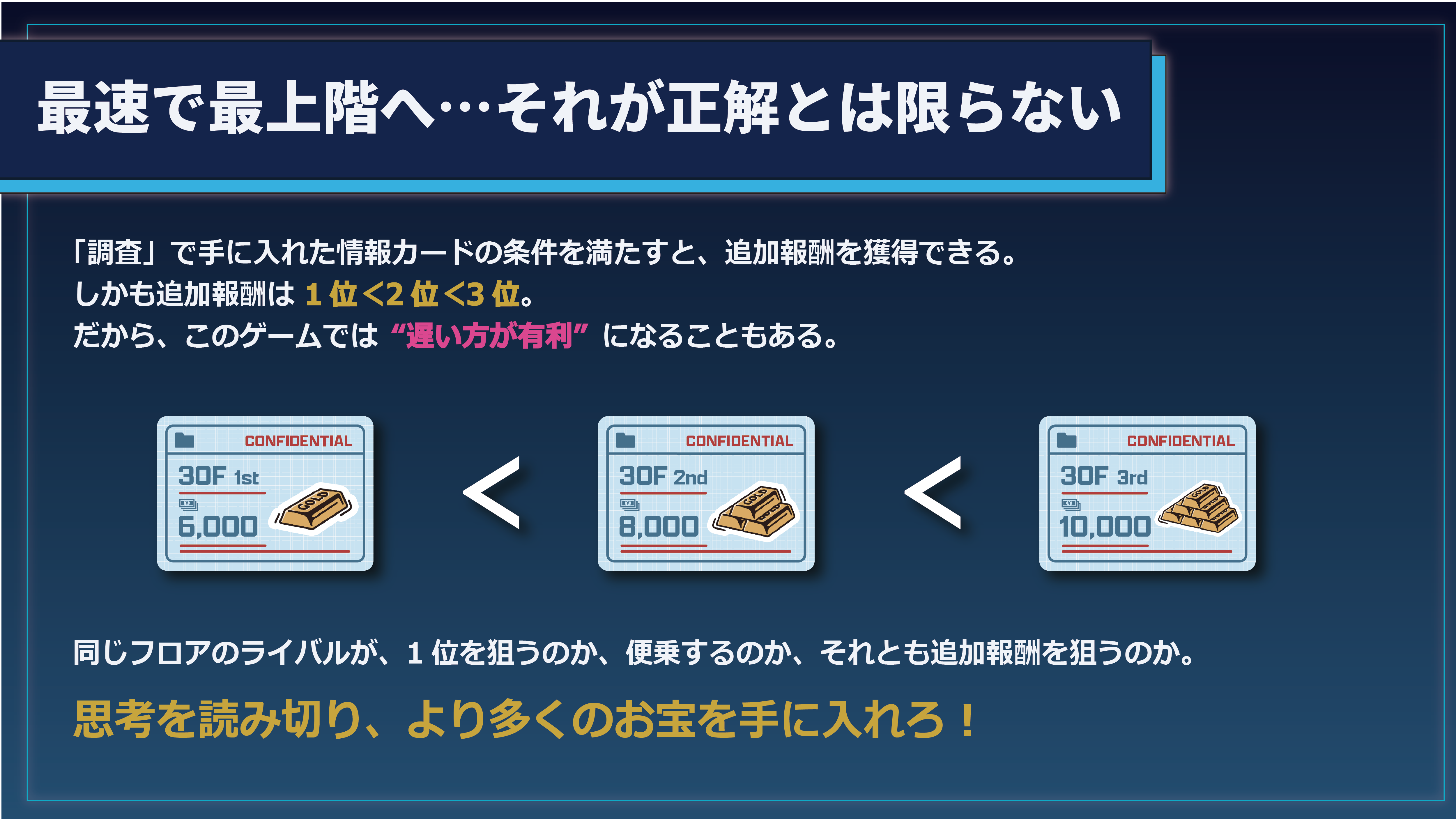 ライバルの動きを読み、狙う階とタイミングを見極めろ。