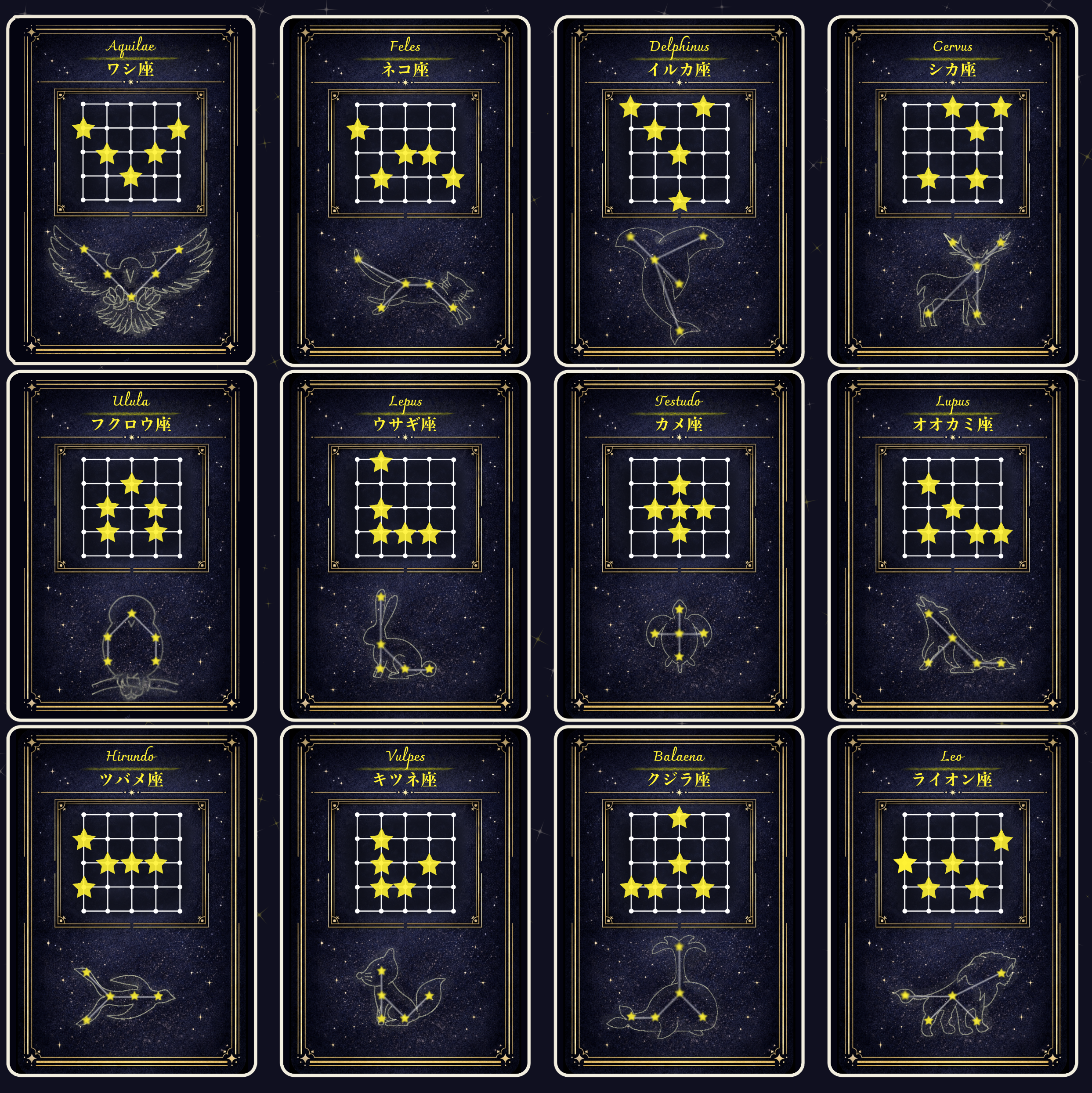 以下の12の生き物を表す星座カードが同封されています