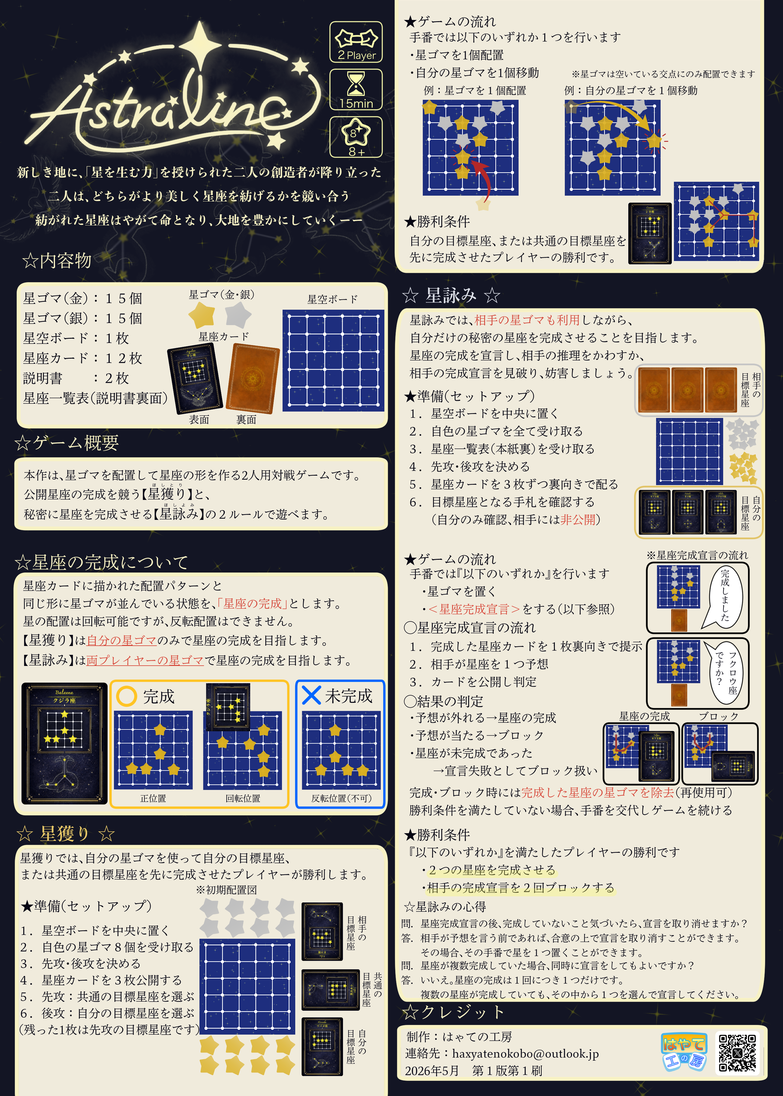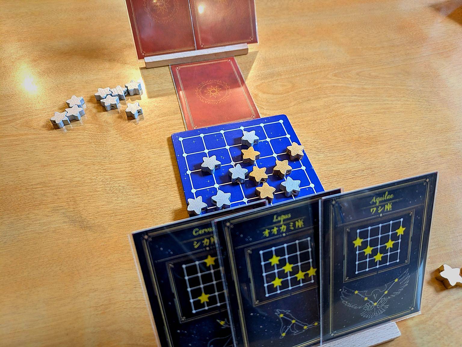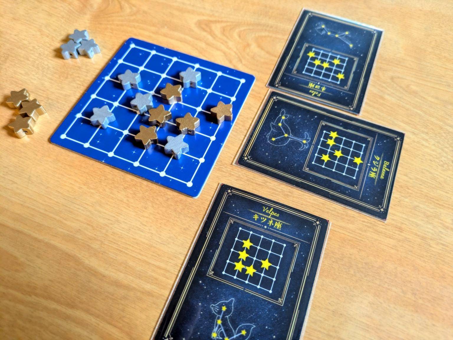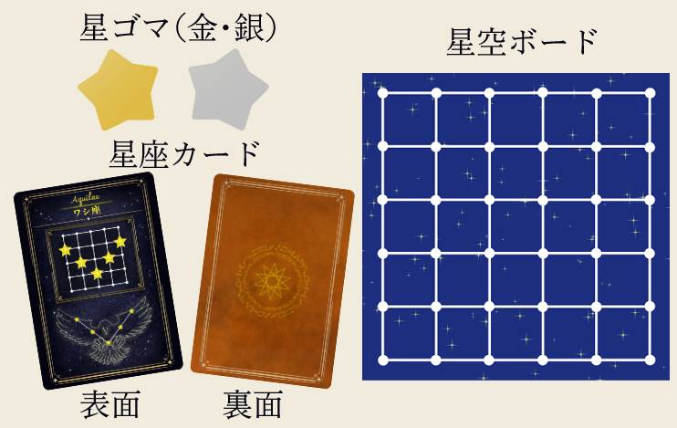 プレイヤーは星を生み出し、星空ボード上に星を配置して星座を紡いでいきます。