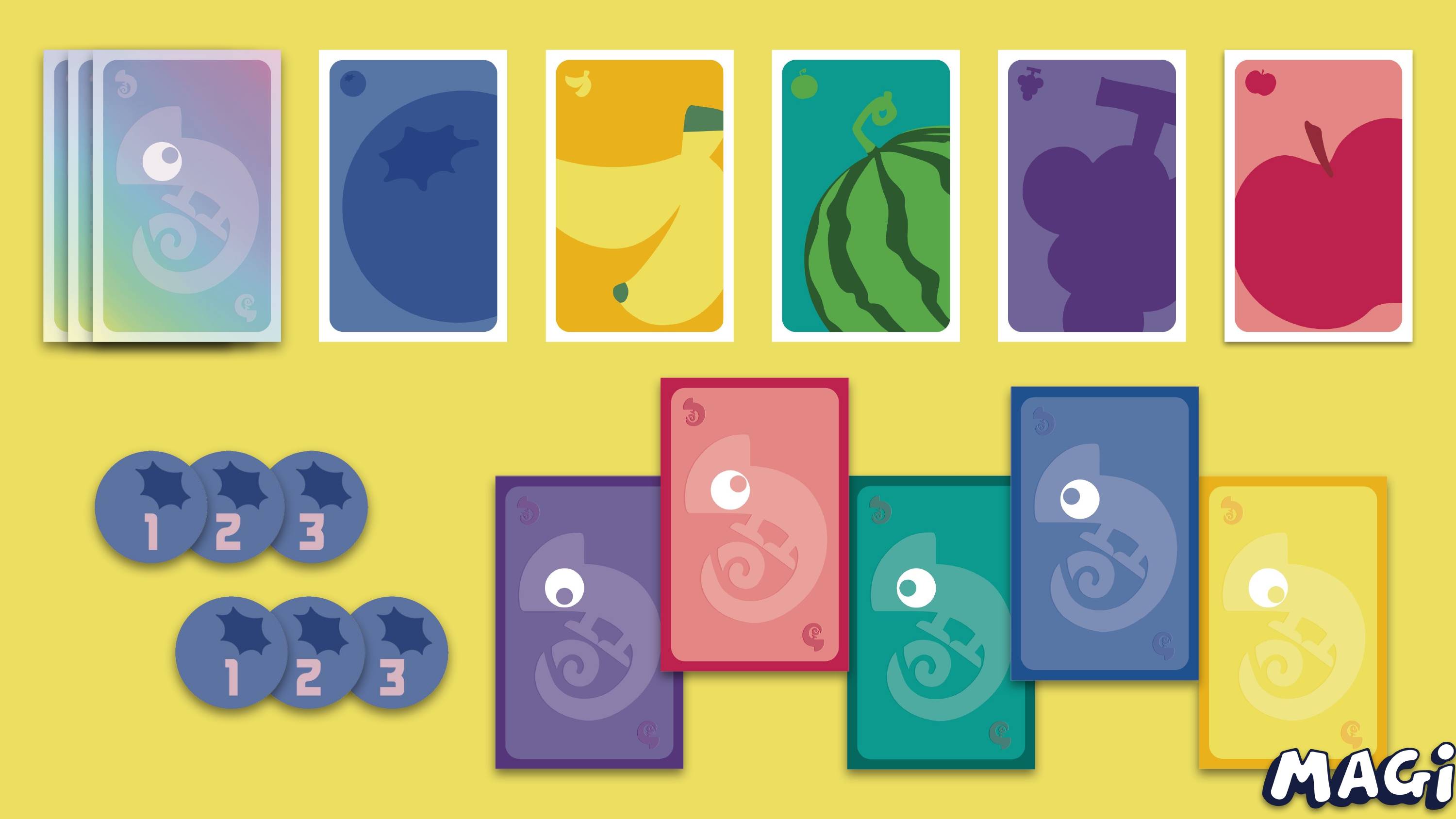 フルーツカードを取って、あなたのカメレオンを変色させよう!