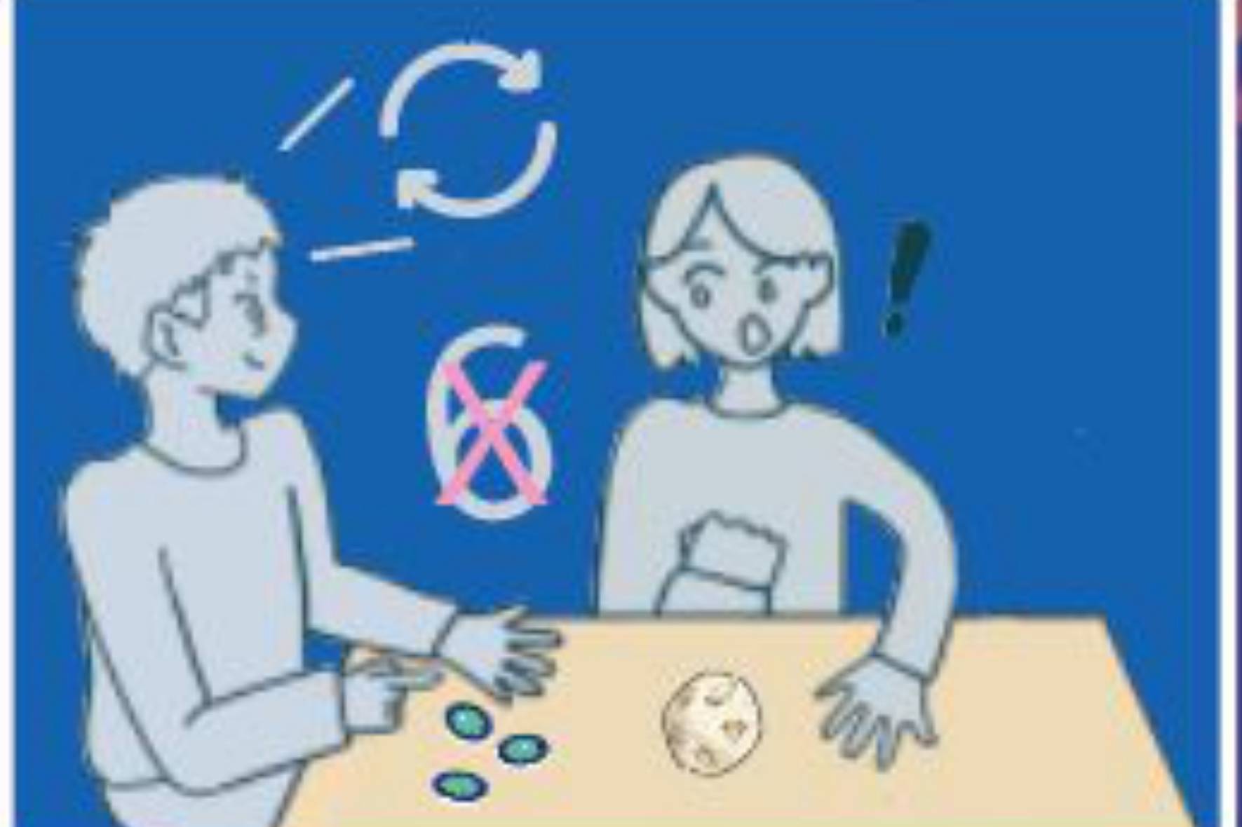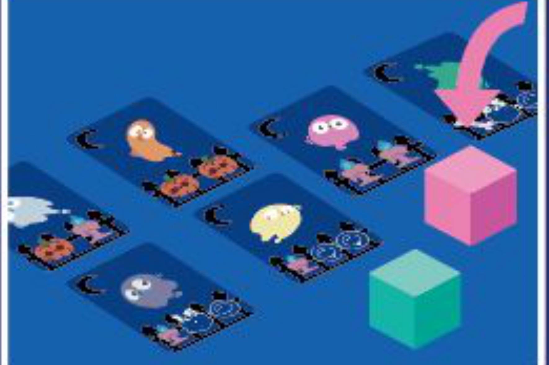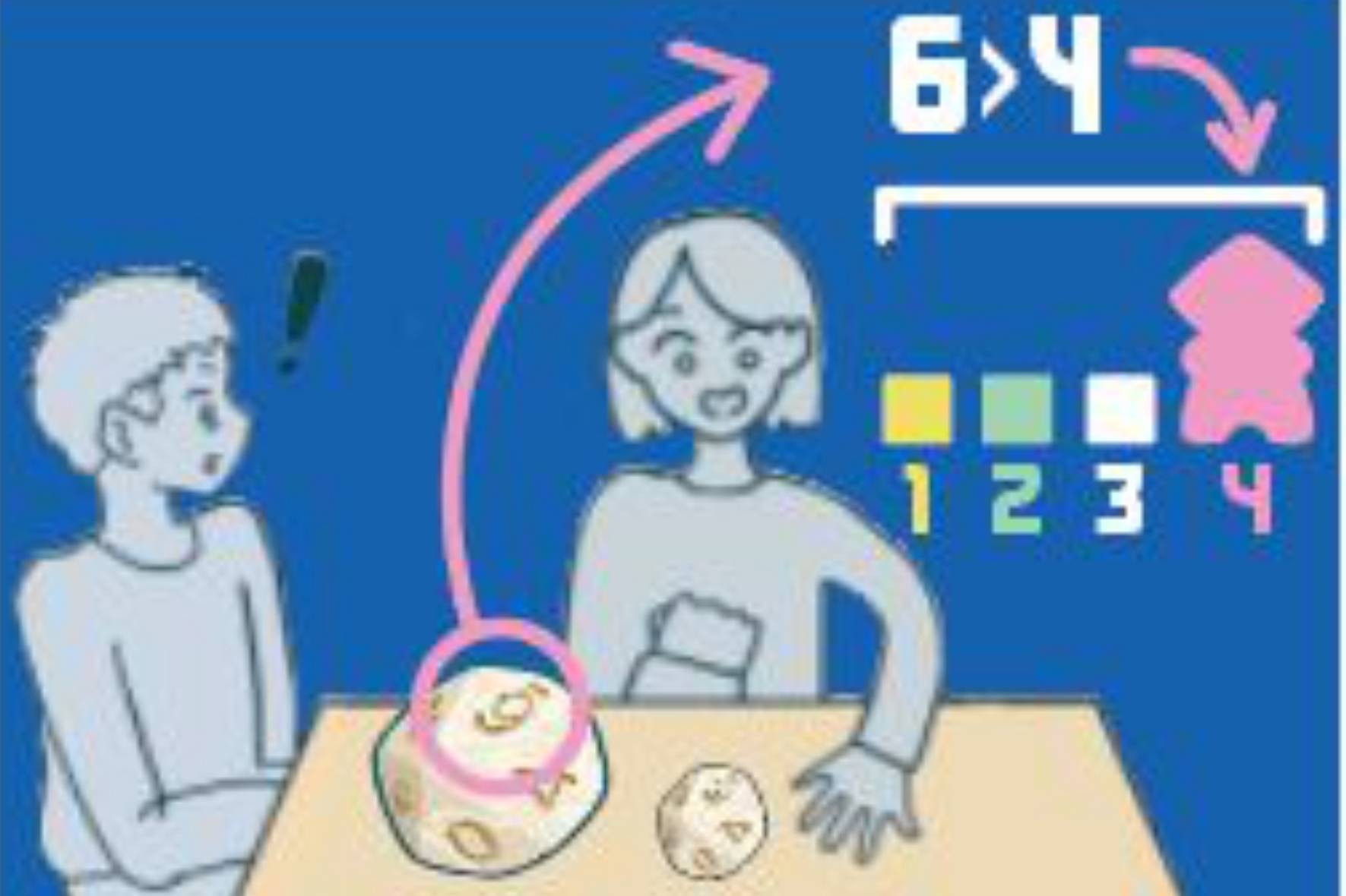 後から来た人から先にダイスを振る。出目が並んでいる人数を上回れば、小さな幽霊を捕まえられる。