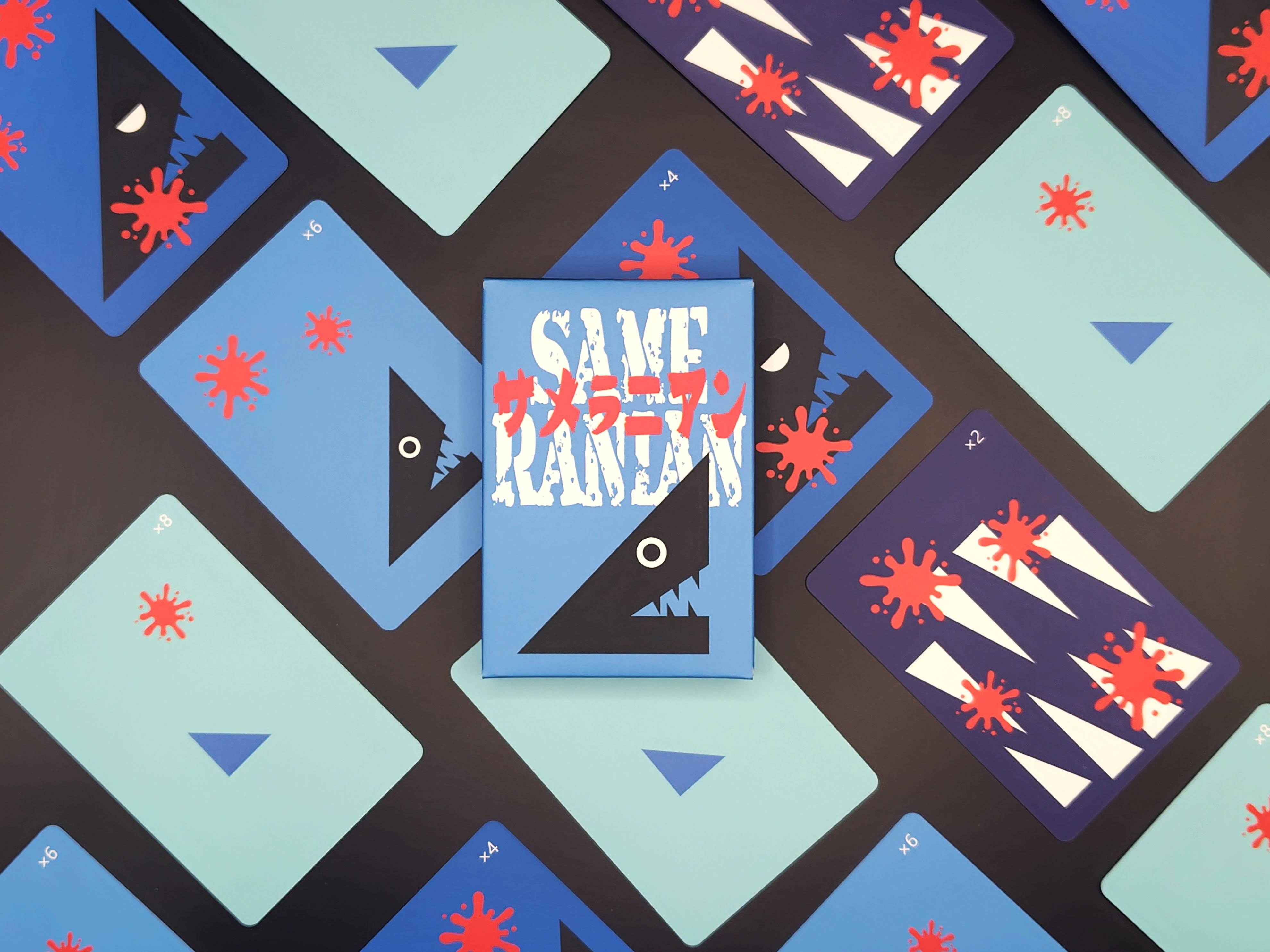 山札には大量のサメが潜んでいて、サメのカードを引き取るたびにダメージを受け、ダメージが一定数たまると脱落します。